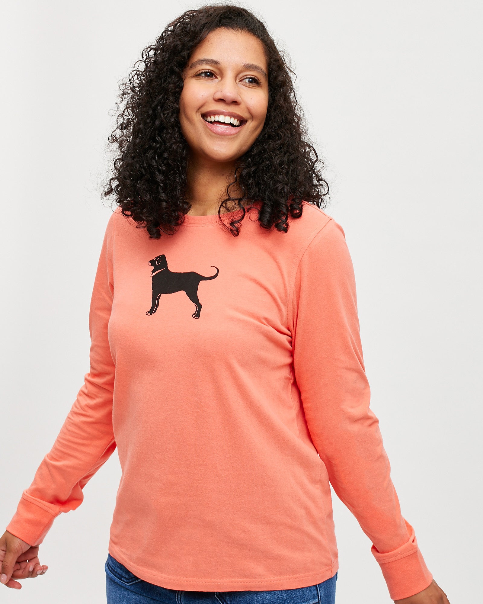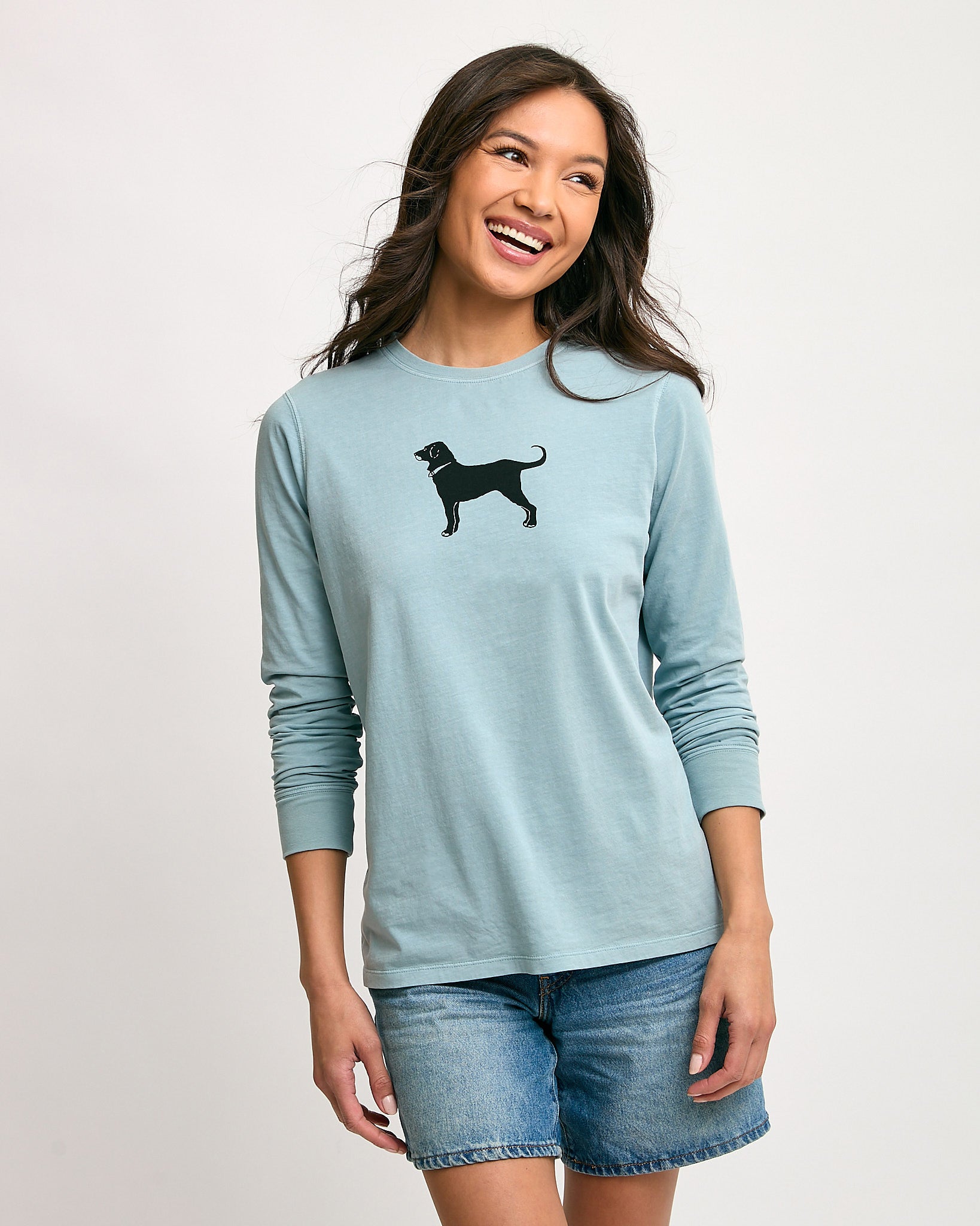 Our favorite long-sleeve tee returns in fresh colors for the season. The Ladies Classic Longsleeve Tee displays the Black Dog logo on the front and “The Black Dog, ESTD 1971” on the back. Made from 100% premium ring-spun combed cotton, it offers a classic fit with cuffed sleeves. Preshrunk to keep its shape and side-seamed to prevent twisting, this tee is dyed in exclusive custom colors created just for us.